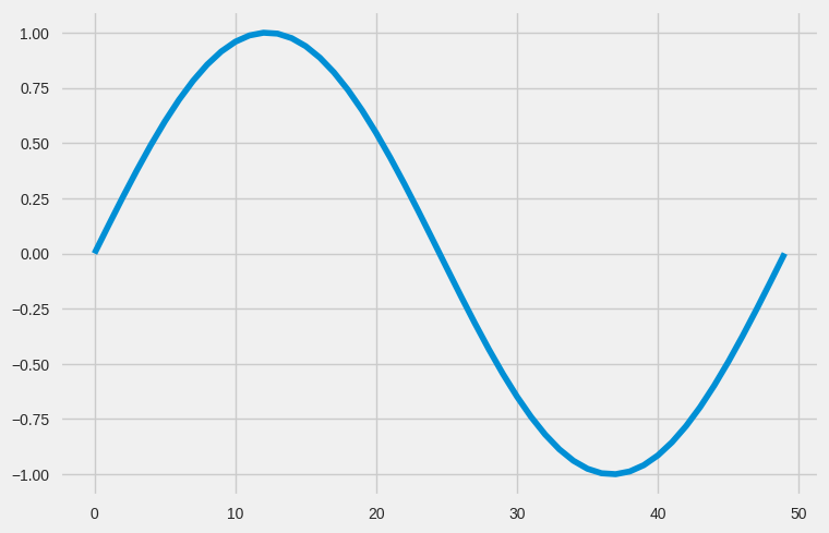plt.plot(np.sin(np.linspace(0, 2 * np.pi)))