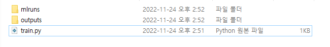 해당 코드를 실행하면 실행한 경로에 아래와 같이 mlflow관련 디렉토리 및 파일이 생성된다.