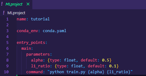 mlflow run https://github.com/mlflow/mlflow-example.git -P alpha=5.0