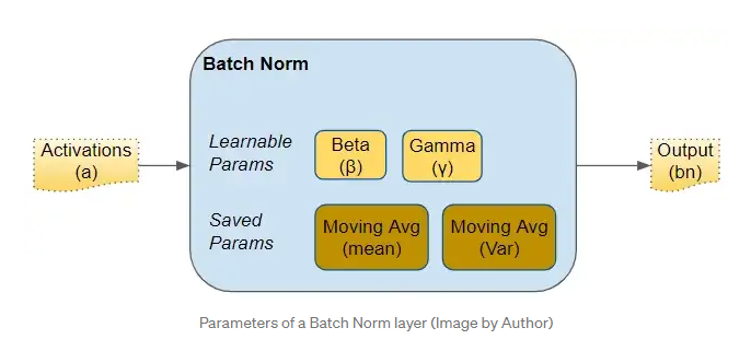- 2개의 학습이 불가능함 Mean Moving Average와 Variance Moving Average가 있으며 Batch Norm의 상태를 저장하는 변수이다.