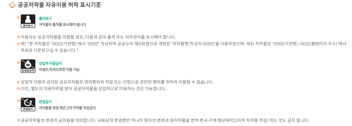 국내에는 문화체육관광부에서 제공하는 공공누리가 있다.