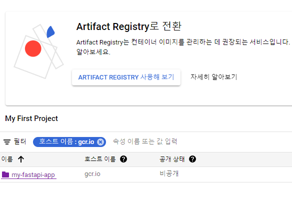 docker tag 명령어를 사용해서 기존의 my-fastapi-app 이미지를 grc.io 이미지로 바꿔주고