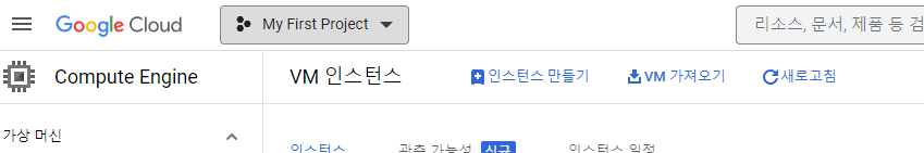 먼저 GCP 콘솔로 이동해서 Compute Engine으로 이동하면 VM 인스턴스 메뉴 윗단에 인스턴스 만들기가 있다.