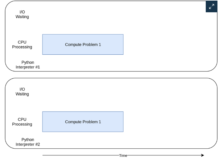 따라서 CPU-bound 작업에는 아예 작업을 나눠서 동시에 실행할 수 있는 multiprocessing이 더 적합하다고 할 수 있다.