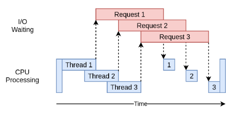 반면에 CPU-bound 작업에서는 thread와 asyncio를 사용한다고 해도 overlapping할 수 있는 작업이 없으며 오히려 여러 개가 생성된 thread나 asyncio의 multitasking에 사용되는 오버헤드 때문에 그냥 코드를 작성한 것보다 시간이 더 소요될 수 있다.