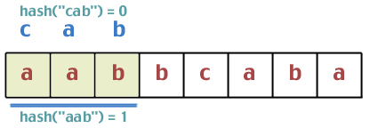 * brute force방식으로 문자열의 자리를 하나씩 옮겨가며 비교하지 말고 해시값을 구하여 일치하는지 비교하기(해시값은 유일함으로)