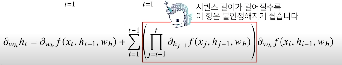 기존의 RNN은 아래의 그림과 같이 시퀀스 길이가 늘어남에 따라 아래의 항이 계속 곱해지므로 gradient vanishing or exploding의 문제가 발생하기 쉬웠다.